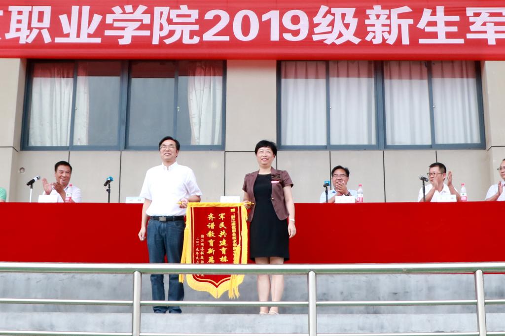 江影代表学院向浙江建设职业技术学院赠送锦旗。