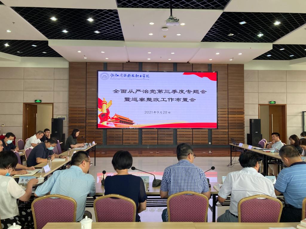 9月28日下午,学校召开2021年全面从严治党第三季度专题会暨巡察整改工作布置会。全体校领导、巡察整改工作相关部门负责人出席会议。会议由党委副书记、校长梁国钱主持。