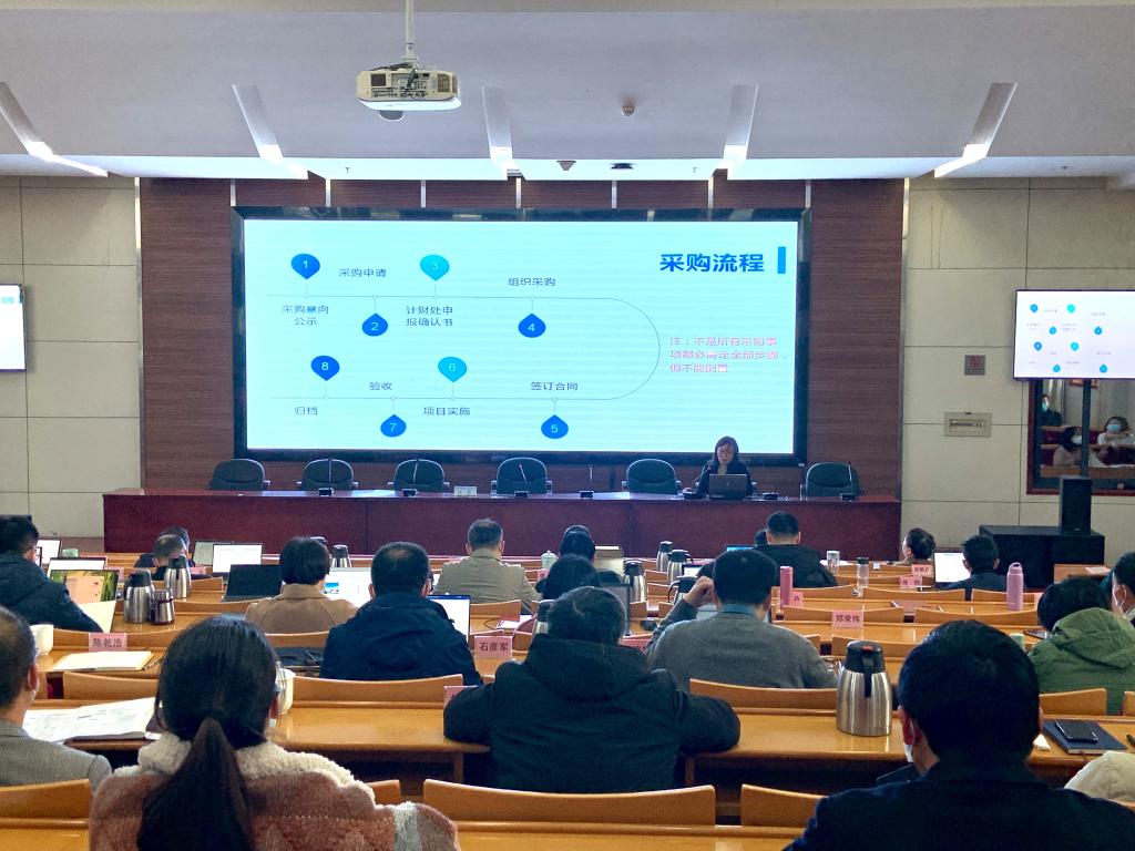 为强化制度意识,增强制度执行力,规范采购行为流程,提升采购质量,学校于2021年12月9日下午在行政楼一楼报告厅开展采购业务相关制度集中宣贯。学校领导班子成员及中层干部、各行政职能部门、二级学院采购业务经办人共80余人参加。