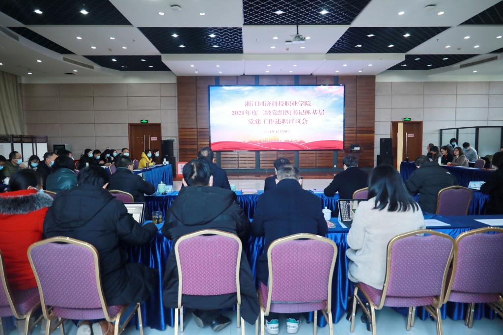 12月30日,学校在行政楼三楼多功能厅举行2021年度二级党组织书记抓基层党建工作述职评议会。全体学校领导、各部门单位负责人、全体组织员和各学院党员代表参加会议,本次述职评议会由党委书记江影主持。
