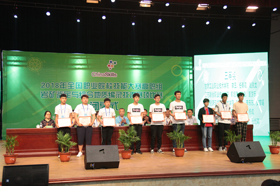 本次全国职业院校技能大赛“岩矿鉴定与综合地质编录技术”赛项,浙江省代表队由我院水利系组建,程静、刘述丽为指导老师,水利1701班叶高俊、杨成和水利1703班王涛参赛。该技能大赛项目分为岩矿标本鉴定、钻孔地质编录、地质图判读及图切剖面绘制3个模块,每个模块竞赛时间均为2个小时,分两天完成。竞赛内容紧贴实际生产过程,有机融合了理论和技能操作,主要考核学生岩矿鉴定、地质编录、地质图识读、地质软件绘图等地质类专业能力以及团队协作、规范意识、心理素质等职业素养,通过比赛推动全国职业院校资源勘查类专业教育及课程情境教学的改革和优化,培养具有“道德素质强、职业技能强、吃苦精神强、适应能力强”的专业人才,这与水利类专业的培养目标高度统一,比赛也吸引了包括我院在内的3所水利类职业院校参赛。在全国职业院校技能大赛中,我院参赛队展现了良好的精神风貌和认真严谨的专业素养。