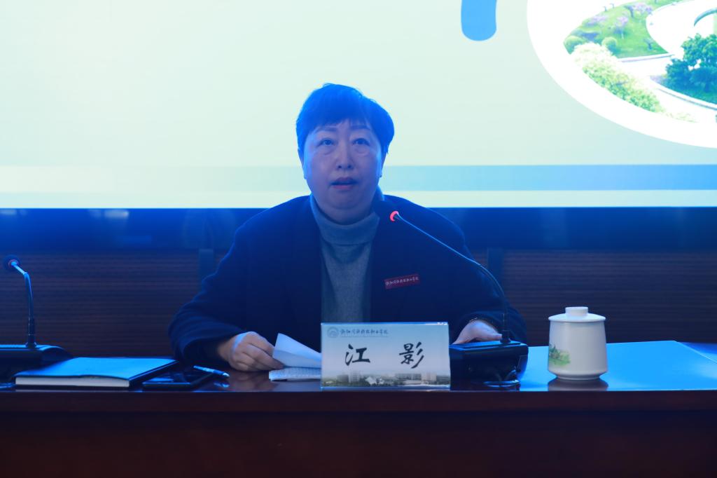 党委书记江影讲话。江书记对2021年学校办学规模首次破万,办学实力全面提升,在人才培养、创新成果、数字变革、系统治理、队伍建设等方面取得了的成绩给予充分肯定。同时指出,面对高职发展的新形势、新背景,面对职业教育大改革大发展的洪流,学校审时度势、抢抓机遇。更要以“双高”建设和文明校园建设为抓手,攻坚克难、守正创新。在学校“提质培优”攻坚之年、“数字化改革”突破之年,“安全稳定”强化之年中,全体教职工要以守好“红色根脉”、当好“排头兵”的政治自觉,坚决拥护“两个确立”,始终做到“两个维护”,聚力聚焦“党建统领、育人为本、数字变革”三位一体统筹发展,以“志不求易,事不避难”的信心、决心、恒心,在新时代的赶考路上勇毅前行!