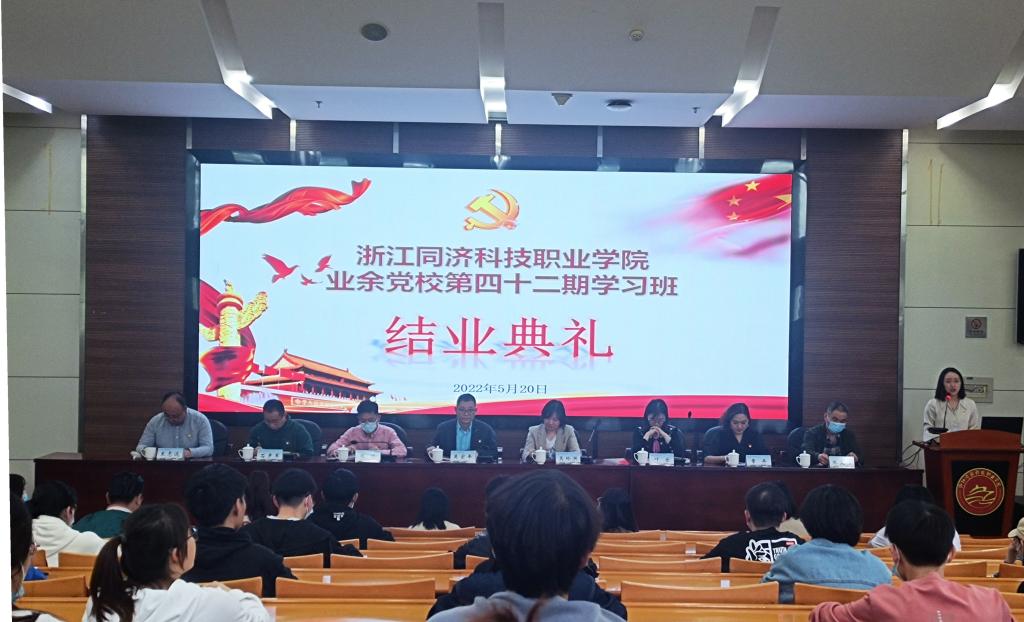 5月20日中午,学校业余党校第四十二期学习班结业典礼在行政楼一楼报告厅顺利举行。学校党委副书记、副校长吴宏平,学校党委委员、组织部(人才办)部长(主任)吴玲洪出席,学工部负责人、各二级学院党总支书记、组织员及全体学员参加典礼。