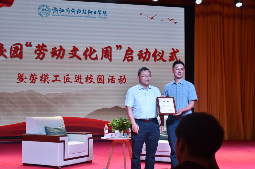 为全面贯彻党的教育方针,把劳动教育纳入人才培养全过程,大力弘扬新时代劳模精神、工匠精神,促进学生全面发展。5月31日,学校组织开展了首届“爱尚劳动·益起成长”主题劳动文化周开幕式暨劳模工匠进校园活动。学校党委委员、副校长沈自力出席并讲话,全国水利技术能手、浙江省技术能手、浙江金蓝领、浙江省五一劳动勋章获得者万志军受邀参加。学工部、团委、各二级学院党总支负责人和学生代表参加了本次活动。