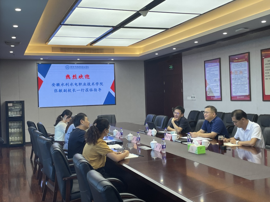 8月5日下午,安徽水利水电职业技术学院副校长张敏一行5人来我校交流调研。学校副校长沈自力、学工部相关负责人参加交流座谈。