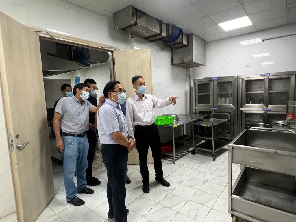 林金德组长一行重点走访了学校食堂、超市、医务室和学生公寓等生活场所,对涉及师生日常安全的事项进行了细致全面的检查,肯定了学校在食堂清洁卫生、菜品生熟分开、直饮水机供水、超市促销食品把关等食品安全方面所做的工作。针对当前开学季的疫情防控工作,林金德组长仔细查看了学校发热门诊的接诊记录,询问了解各项防疫规定落实情况,强调要慎终如始、从严从紧抓实疫情防控,确保万无一失。