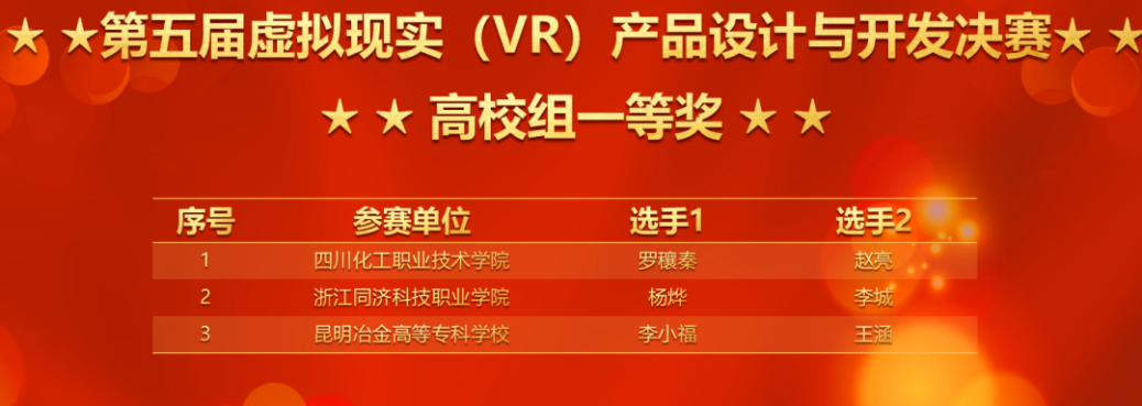本次大赛由金砖国家工商理事会、一带一路暨金砖国家技能发展国际联盟、中国科协一带一路暨金砖国家技能发展与技术创新培训中心,联合中国发明协会、教育部中外人文中心主办,是金砖五国最高领导人认可的、政府间国际组织金砖国家工商理事会批准的国际竞赛,是推动金砖国家间教育合作、技能开发和人文交流活动的重要平台。“虚拟现实(VR)产品设计与开发”赛项以“虚拟现实、人人开发”为主题,分为综合职业能力测评、虚拟现实产品设计与开发和答辩3个模块。综合职业能力测评模块采用国际流行的COMET测评方法,竞赛时间2个小时,通过笔试测评选手的直观性、功能性、使用价值导向性、经济性、工作过程导向性、社会接受度、环保性、创造性等综合职业能力。虚拟现实开发阶段,竞赛时间6个小时,参赛选手须在规定时间内根据赛前发放的任务书,使用VR引擎软件进行产品设计与开发,提交自主设计的PC软件、VR软件、制作的工程文件和答辩PPT。答辩阶段包含两个环节,分别是结合PPT进行设计成果陈述和专家提问。比赛共历时3天,全面考查参赛选手的虚拟仿真设计能力、VR虚拟开发能力、VR设备应用能力、逻辑思维组织能力和语言表达交流能力。
