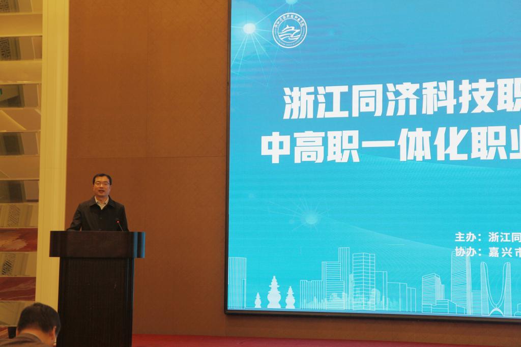 浙江省教育科学研究院职业与成人教育研究所所长崔陵在会上作了题为《浙江省中高职一体化课程改革的逻辑与实践》的主旨报告。崔陵全面分析了“十四五”期间浙江省职业教育发展面临的新形势,从职业教育是一种类型教育、构建现代化职教体系、职业教育有高水平发展的内在需求、深化产教融合推进职教高质量发展四个方面深刻阐释了浙江省中高职一体化课程改革的内在逻辑,并对浙江省中高职一体化改革指导思想、改革方案、技术路线、改革思路做了详细介绍。