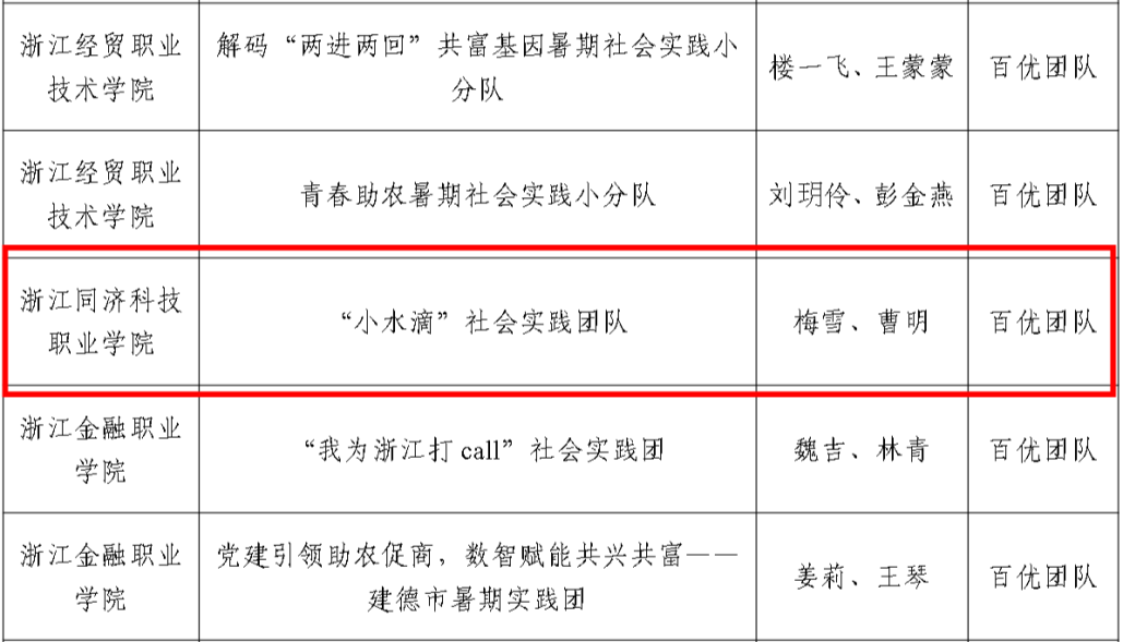 由省委宣传部、省文明办、省教育厅、团省委、省关心下一代工作委员会、省学联共同主办的2022年浙江省高校暑期社会实践风采大赛落下帷幕。大赛围绕“学习二十大,奋进新征程”主题,设有“理论教育”“两个先行”和“综合实践”三大类别,共有102所高校限额推荐580支团队参加省级复赛。经过层层筛选、文本评审等环节,共有100支队伍入选,我校水利学院“小水滴”社会实践团队荣获省“百优团队”荣誉称号。