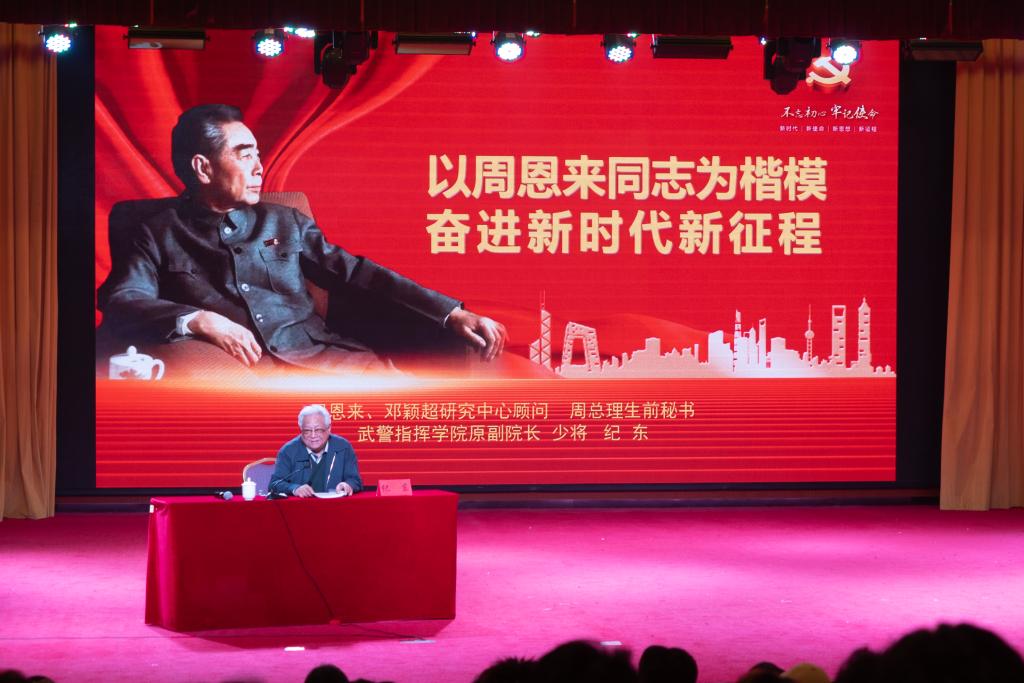 今年是周恩来总理诞辰125周年,也是我校开展“周恩来班”“邓颖超班”创建活动第15周年,为深入学习贯彻落实党的二十大精神,继承和弘扬老一辈无产阶级革命家无比宝贵的革命遗产,不断深化红色基因教育活动,4月8日,我校邀请周恩来总理生前秘书纪东将军来校为师生作题为“以周恩来同志为楷模 奋进新时代新征程”的主题报告。校党委副书记、校长王卫标、党委委员、宣传部部长吴敏启出席。全校300余名师生代表到场聆听。