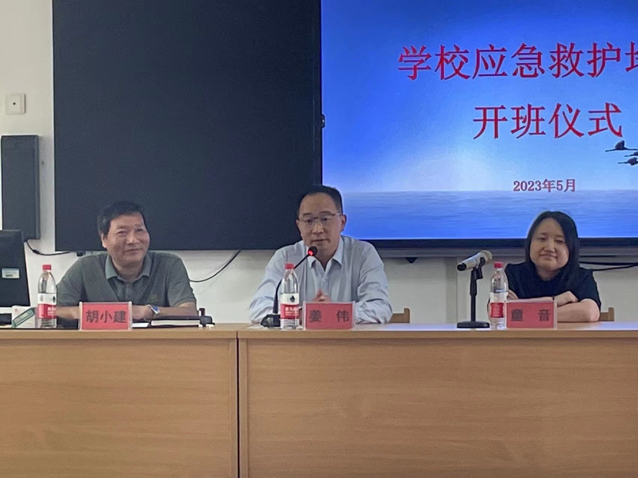 为深入推进平安校园建设,全面提升教职工安全与急救意识,提高教职工应急救护能力,后勤处与人事处联合主办开展“救在身边校园守护”应急救护培训活动。本次活动分为两期培训班开展学习,第一期于5月17日正式开班。学校党委委员、副校长姜伟出席开班仪式。