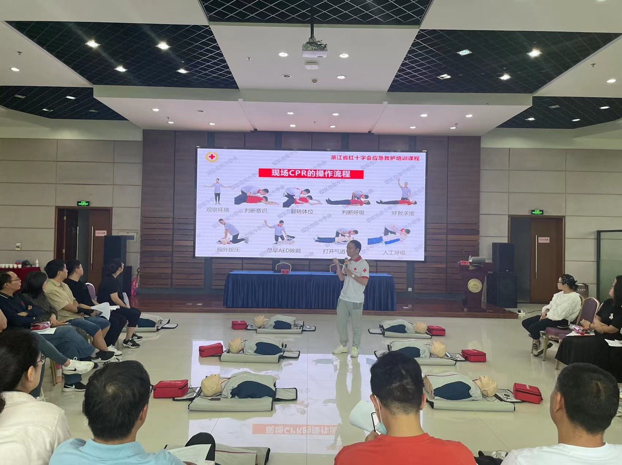 本次培训活动分为理论与实操两部分。培训班特别邀请了医院、卫校、救援队等资深救护师进行现场授课讲解,内容涵盖了常见伤病处理、心肺复苏、骨折处理等方面的知识和技能。在理论课环节,授课老师详细讲解了心肺复苏术、AED的使用、创伤包扎及常见急症、意外伤害的应急处理等急救知识,他们用专业而诙谐的讲解,使原本枯燥的理论知识变得通俗易懂,大家都认真听讲记录并积极提问,培训现场气氛热烈。在模拟实操环节,救护师们手把手指导现场的学员如何进行有效的心肺复苏,让操作走出课件,使教学内容丰富有趣。学员们积极踊跃参与实操练习,通过亲身体验,进一步巩固所学知识,掌握现场急救的基本技能。