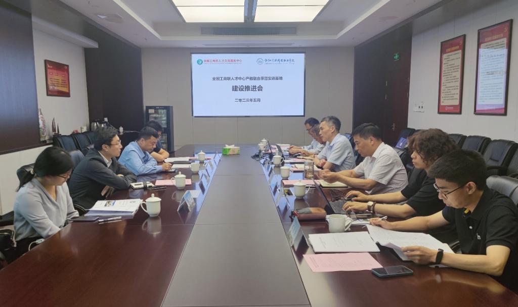 5月31日下午,学校在行政楼会议室召开全国工商联人才交流服务中心示范实训基地推进会。党委副书记、校长王卫标,党委委员、副校长朱兆平,全国工商联人才中心产教融合业务负责人王晓勃、项目专家曹彬、林肯出席会议,学校发展合作处、教务处、机电工程学院负责人参加会议。