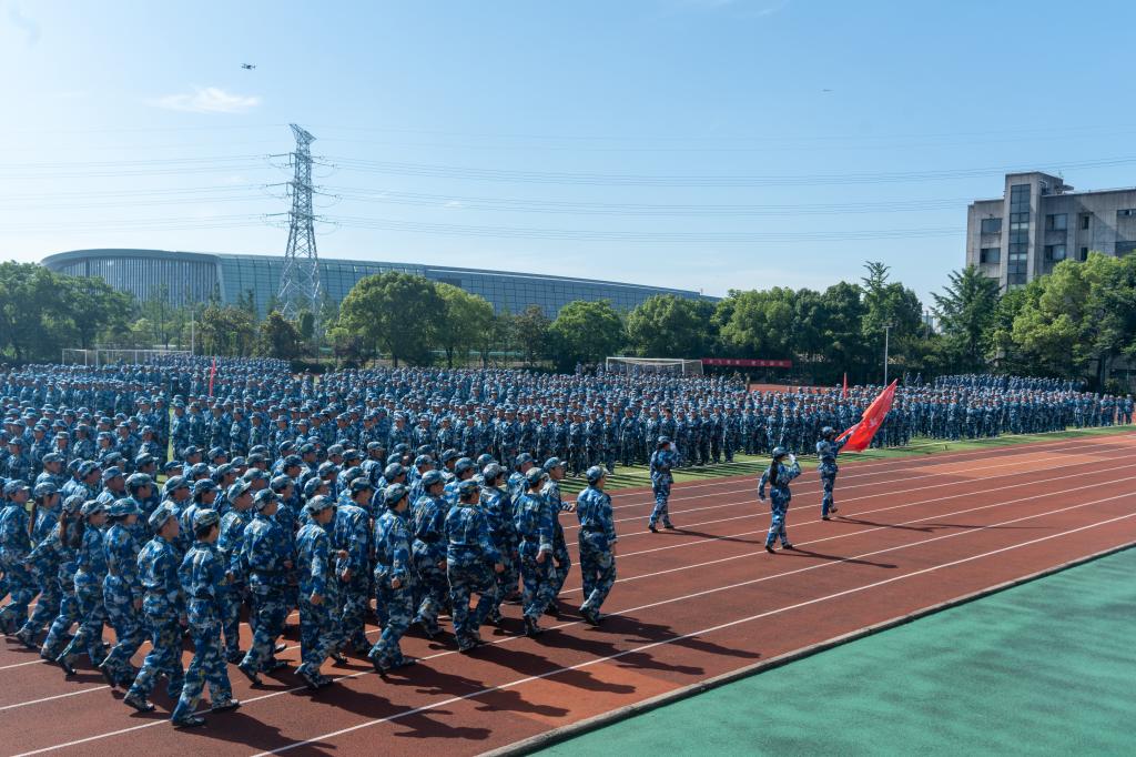 校长王卫标代表学校向辛勤付出的各位教官表示衷心的感谢,向为此次军训工作默默付出的各位老师致以崇高的敬意,向顺利完成军训任务的同学们表示热烈的祝贺!他表示,本次军训不仅锻炼了同学们的身体素质、组织纪律,同时也进行了意志、毅力、集体主义、团结协作、行为规范的教育。希望同学们能够将军训中学到的东西,运用到今后学习、生活的方方面面,不断提升自我,为争取更好的成绩而不懈努力。随后,校党委委员、纪委书记应芬代表学校向承训部队浙江建设职业技术学院士官学院院长金璐赠送锦旗。