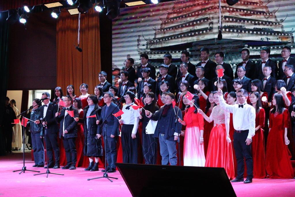 本次合唱比赛共有5支学生组代表队、7支教工组代表队参加。歌咏会在《走向复兴》中拉开序幕,随后,《再一次出发》《国家》《我们走在大路上》《灯火里的中国》等一首首耳熟能详的红色经典歌曲依次唱响。参演师生们以饱满的热情、昂扬的姿态,抒发了对党和祖国的无限热爱。最后,参会校领导及参赛队伍代表受邀走上舞台,与在场师生一起,共同合唱一曲《大中国》,气氛达到高潮。