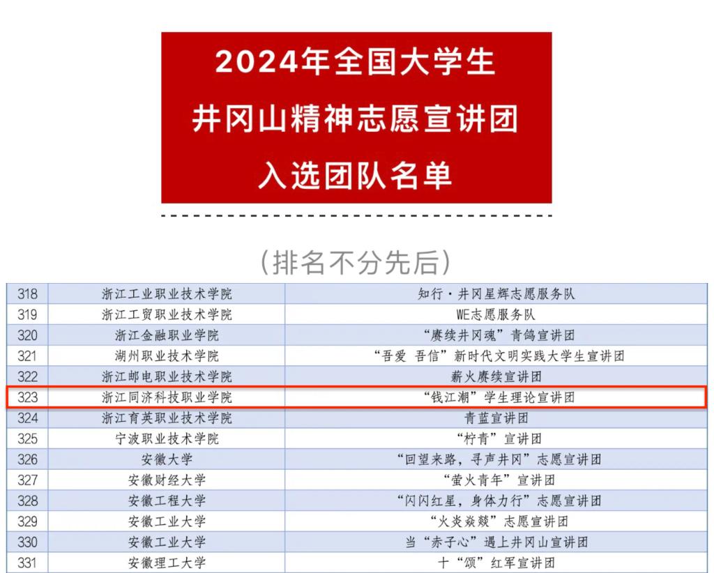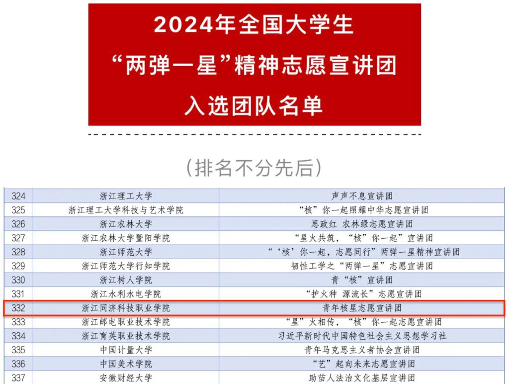 近日,团中央青年志愿者行动指导中心联合有关单位,开展弘扬中国共产党人精神谱系志愿宣讲活动,面向全国高校遴选大学生志愿宣讲团队。我校马克思主义学院选送的“钱江潮”学生理论宣讲团、薪火宣讲团、青年核星志愿宣讲团分别入选井冈山精神志愿宣讲团、延安精神志愿宣讲团和“两弹一星”精神志愿宣讲团。