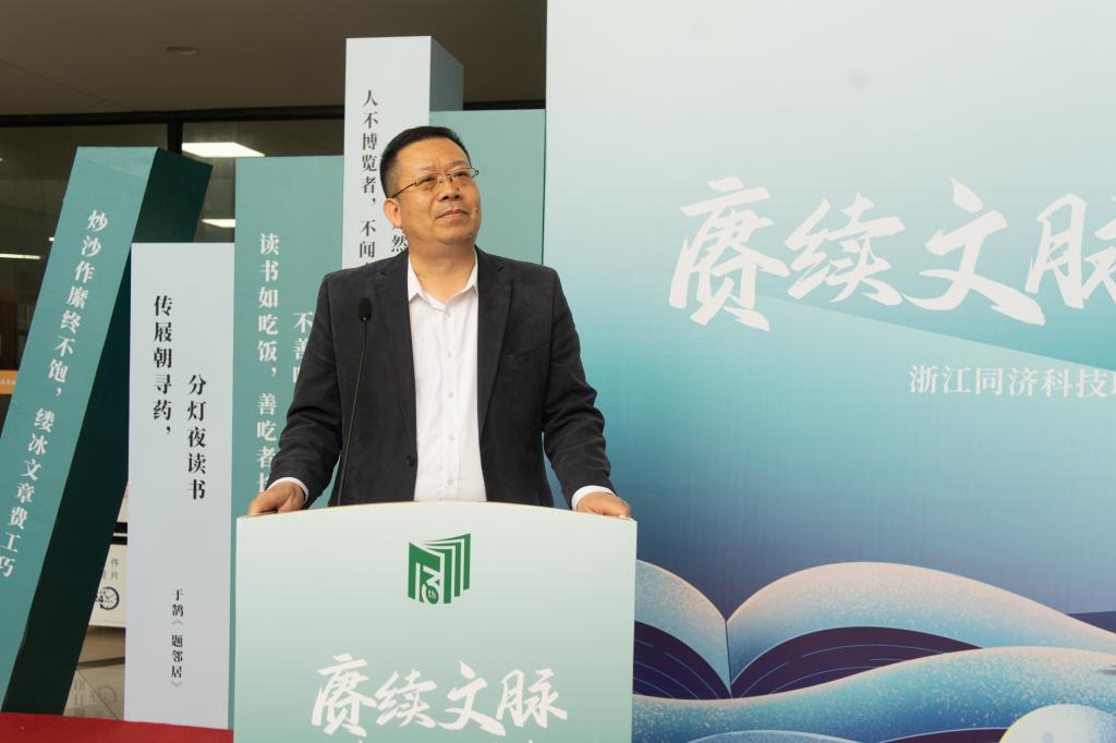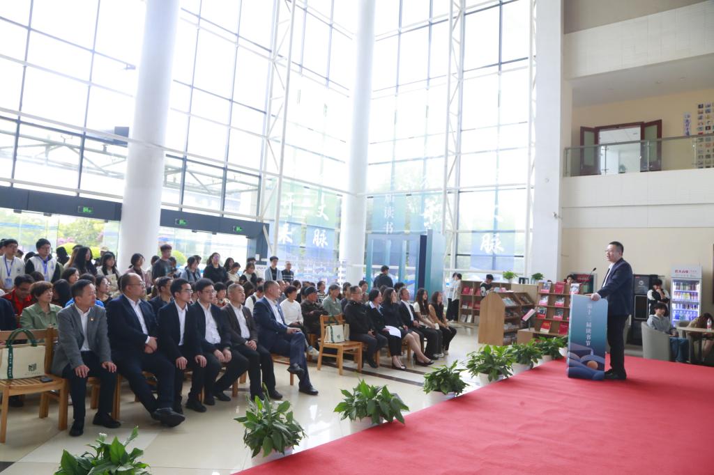 最美四月读书日,落花时节书香浓。4月22日,以“赓续文明•继往开来”为主题的学校第十三届读书节开幕式在图书馆一楼大厅举行。学校党委书记张勇,党委委员、副校长姜伟,党委委员吴玲洪出席活动,相关职能部门负责人、教师代表、学生代表参加活动。活动由吴玲洪委员主持。