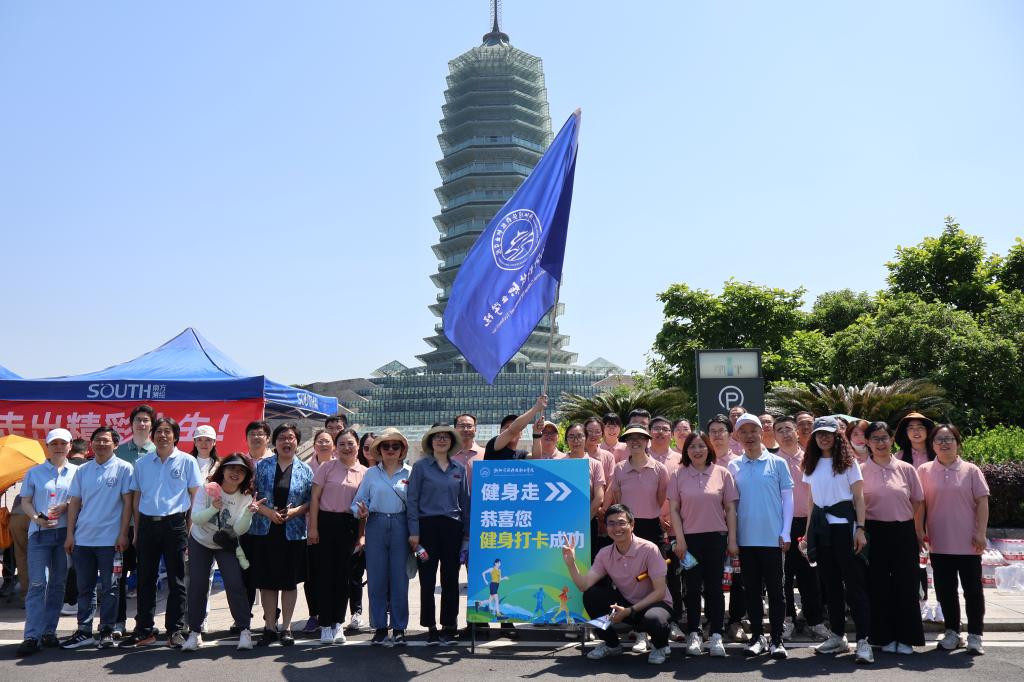 本届运动会设个人项目一项“教职工健身走”,集体项目两项“飞镖投掷”和“迎面接力赛跑”。14日上午9时,教职工在学校运动场集合,在队旗的指引下出发。教职工精神抖擞,步履矫健,展示了同科教职工的健康生活风尚,本次健身走终点站设在水博园广场,全程大约4公里。