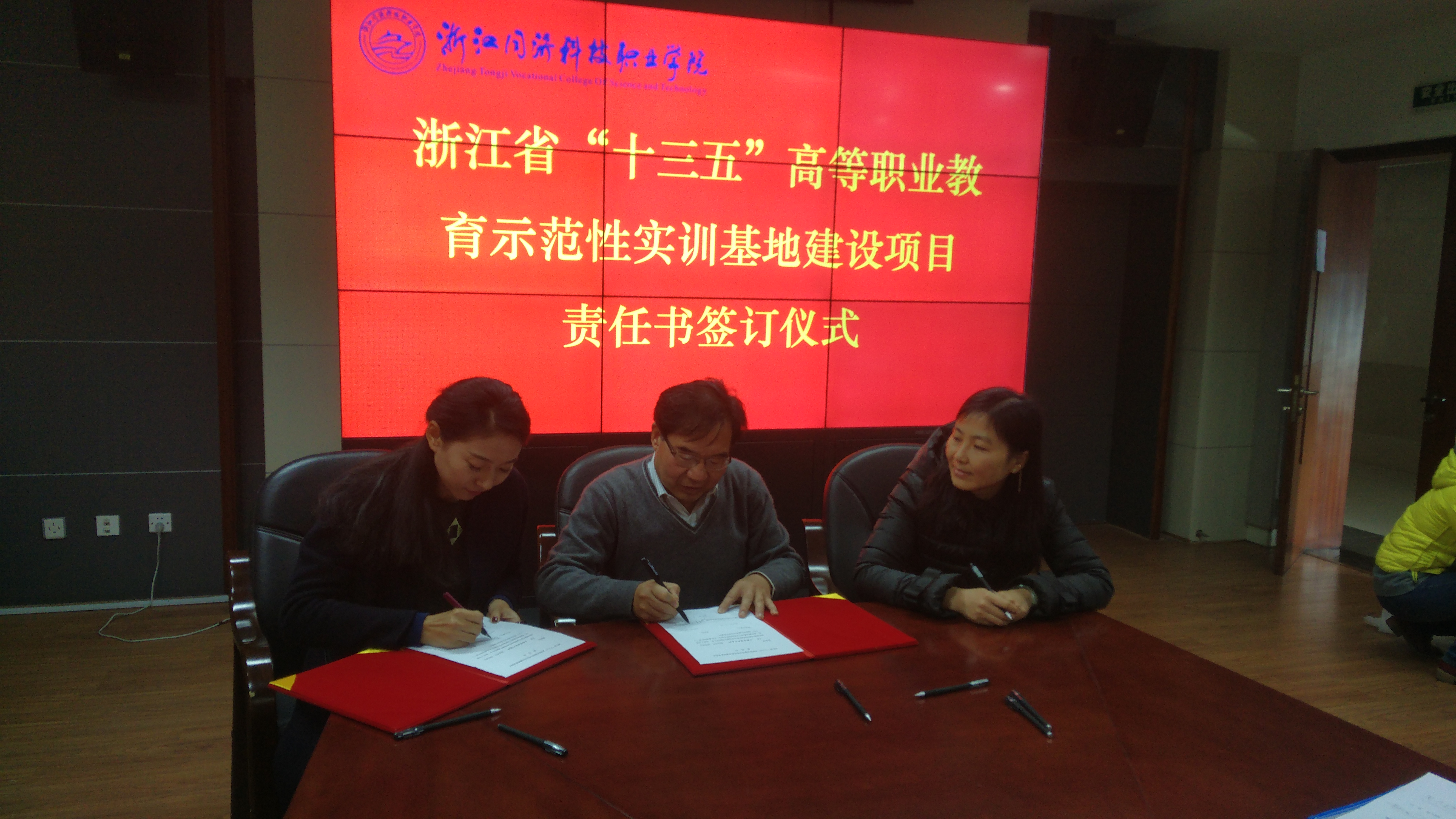 12月21日下午,学院在行政楼二楼会议室举行了浙江省“十三五”高等职业教育示范性实训基地建设项目责任书签订仪式,学院院长梁国钱、干校副校长朱兆平、王建华出席了签订仪式。发展合作处、教务处、资产处、相关系主任、项目负责人及实训基地建设团队成员参加了本次会议。会议由副校长朱兆平主持。