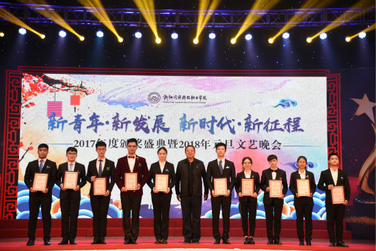 本次晚会形式新颖,特别开通网络直播供各地校友观看。整场晚会融入感恩父母、励志成才、热血爱国、青春活力等主题,颁奖环节结合文艺表演的形式为全院师生呈现了一场感人、感动、感激的晚会。首先颁发的十佳大学生荣誉中的“感恩父母”环节将晚会带入了第一个感人时刻。在十佳社团颁奖环节中,十佳社团带来的《书简舞》和千人互动合唱《最初的梦想》展现了学生社团作为学生“第二课堂”的重要性。最后在颁发2017年度荣誉之星环节中,音画联唱《渴望光荣》燃爆全场,国旗班用他们独特的军人气质征服了在场的每一个人。来自浙江师范大学的青年女高音歌唱家王蕾老师的《天路》和杭州话剧团讲述剿灭劣V类水的小品《上善若水》给观众带来了不一样的视听体验。晚会在许小青、叶炬锋老师共同带来的《我和我的祖国》中圆满结束。