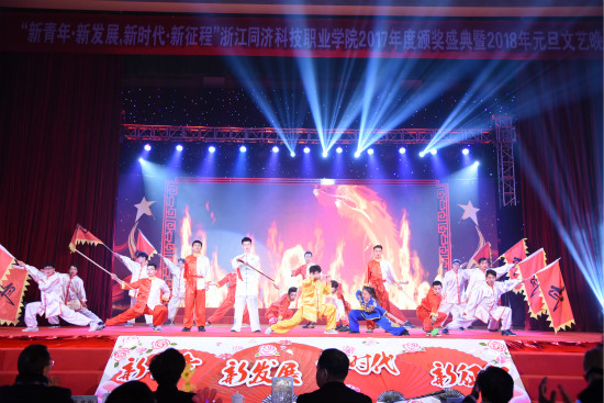 12月27日晚,我院“新青年·新发展,新时代·新征程”2017年度颁奖盛典暨2018年元旦文艺晚会在学院文体活动中心举行。省水利厅党组成员、副厅长蒋如华,省水利厅人事教育处处长张日向,省水利厅直属机关党委副书记、工会主任董福平应邀出席本次晚会,学院全体院领导,与师生共1200余人一同观看晚会,共迎新年。