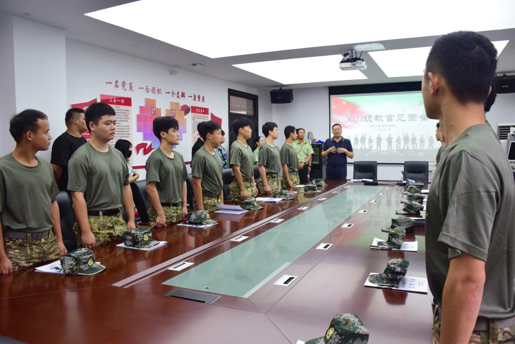 9月17日,学校召开2024级军训教官见面会。学校党委书记张勇,党委委员、副校长吴敏启,党委委员、副校长刘进宝出席各二级学院教官见面会,对军训工作提出明确要求。各二级学院党总支书记、通识学院相关负责人、负责军训工作的辅导员及全体教官参加。