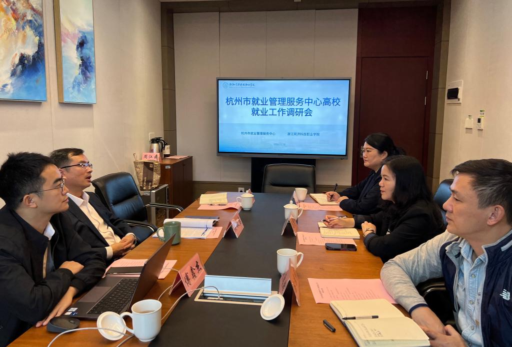 近日,杭州市就业管理服务中心党委委员、副主任冯慧卿,青年就业处处长赵逸斌,青年就业处一级主任科员何英一行来我校调研。学校党委委员、副校长吴敏启主持会议,学工部负责人和就业工作相关人员参加会议。