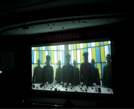 11月21日晚,由共青团浙江省委、浙江省新闻出版广电局、浙江省电影放映协会等多家单位共同主办,全省相关高校承办的浙江省百场红色电影进高校活动来到我院,全院470名师生在图书信息楼报告厅共同观看了红色电影《百团大战》。