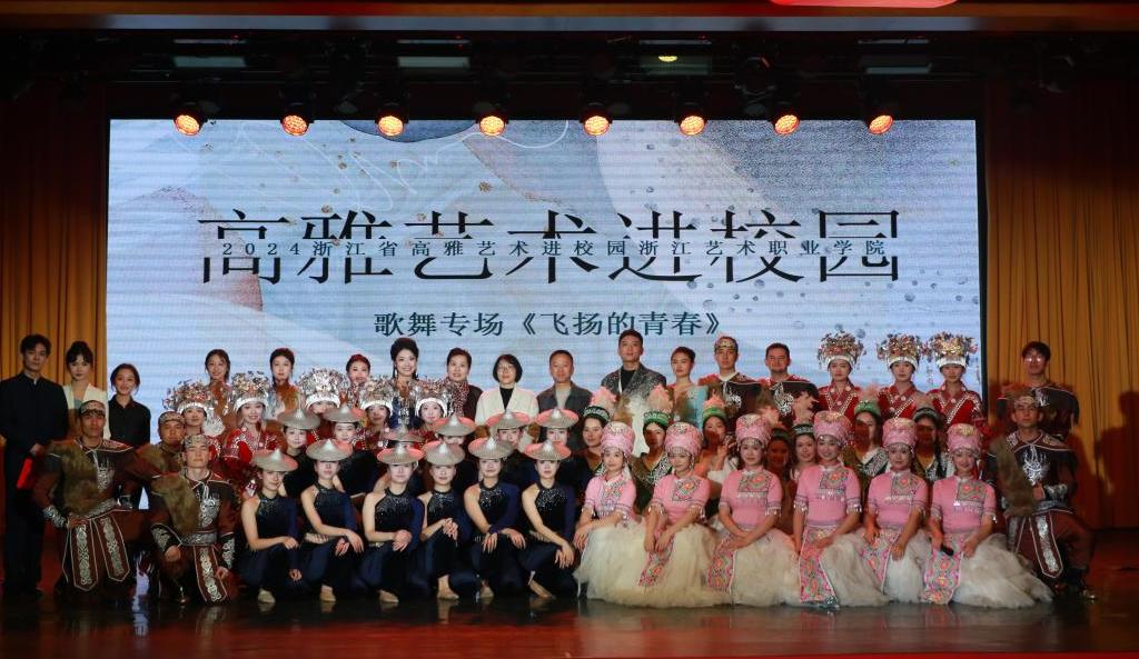 为全面贯彻落实教育部关于高雅艺术进校园活动精神,3月12日晚,浙江青年实验艺术团“飞扬的青春”歌舞专场演出在我校水韵剧场顺利举行,学校党委委员、纪委书记应芬、浙江艺术职业学院教学实践中心主任陈芬芳出席。