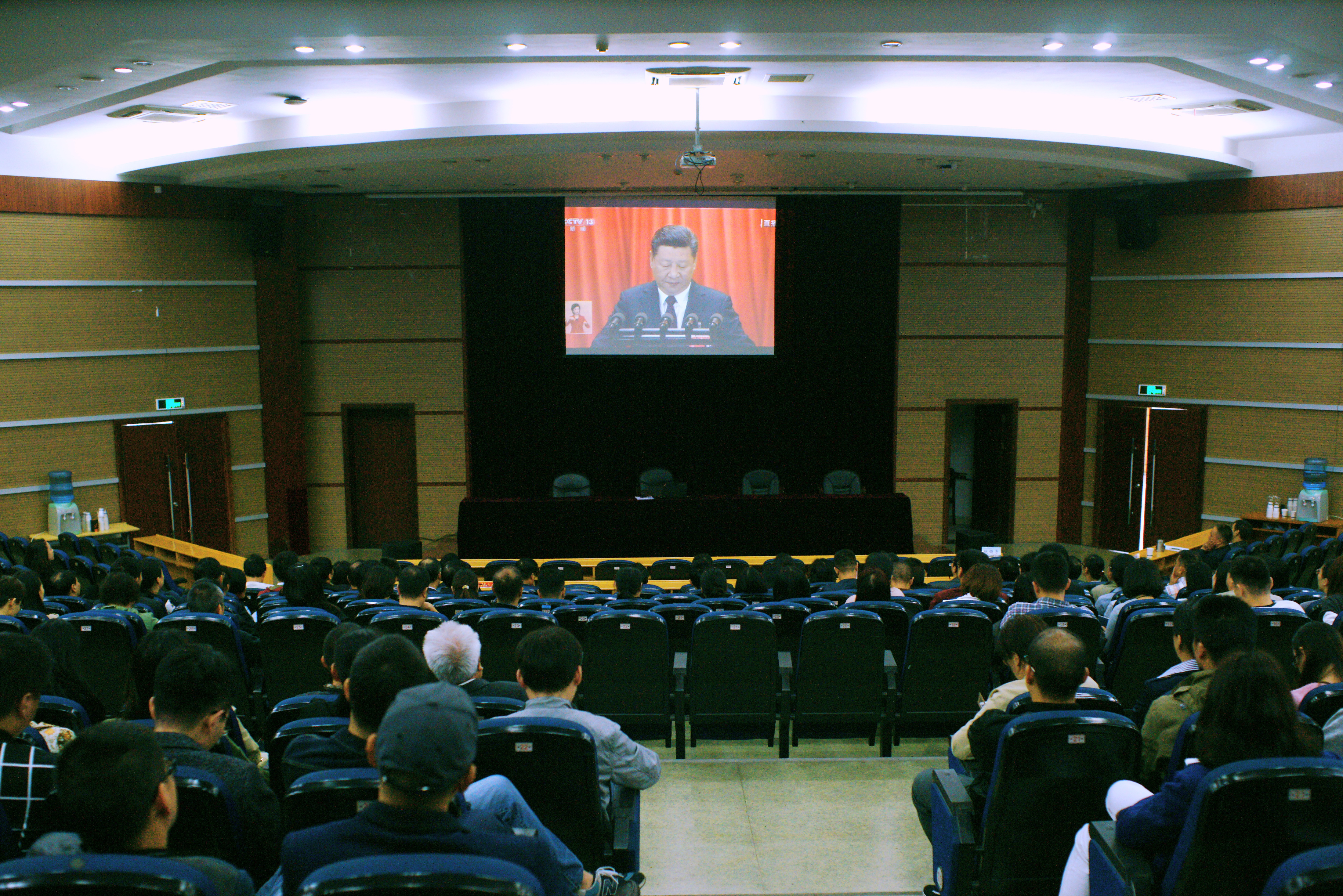 学院教职工在图书信息楼一楼报告厅,共青团干部、团员青年代表在行政楼三楼多功能厅集中收看了党的十九大开幕式,其他无课的学生自发聚集在宿舍或教室里,通过网络等媒体观看。全院师生认真收看学习了习近平总书记代表第十八届中央委员会向大会作的报告。收看过程中,大家都聚精会神,不时做好笔记。