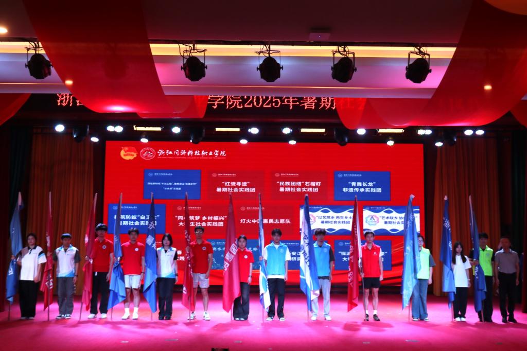 6月27日,学校2025年暑期社会实践出征仪式在水韵剧场举行。学校党委委员、副校长吴敏启出席活动,学工部、团委负责人,二级学院团总支书记以及暑期社会实践团队师生代表共同参加。