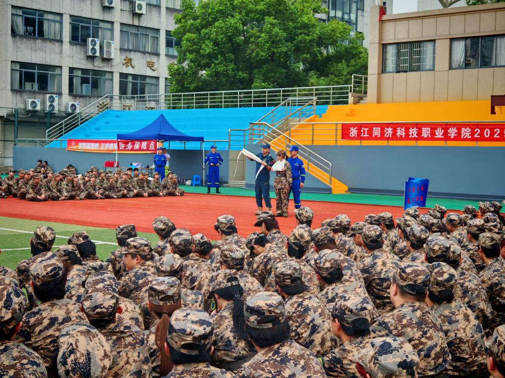 为落实学校校园安全稳定工作会议指示精神,强化军训安全教育培训,切实增强2025级新生的自防自救能力,9月21日,学校开展2025级新生应急救护专题培训活动。本次活动特邀萧山区蓝天救援队副队长邱晓亮担任主讲。学校党委委员、副校长刘进宝,各二级学院有关负责人到场指导。2025级新生代表近千人参加培训。