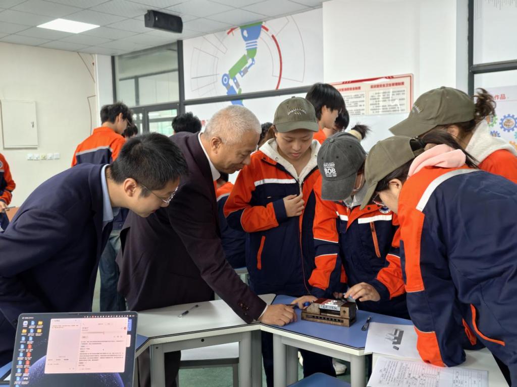 专家组聚焦“项目实效落地”主题,开展多维度核查。在访谈环节,专家分组与校院领导、项目教师及学生代表进行深入交流,全面了解项目实施成效。在课堂观察环节,专家组走进SGAVE专属教室,现场观摩《学习领域3:零件加工工艺设计及编程仿真》课程的教学实况。此外,专家组实地考察了机械制造实训基地,详细了解基地建设、设备配置与使用维护情况,并认真查阅了包括教案、工作日志、实习报告、培训证明及考核材料在内的各类教学资料。在反馈会上,专家组对我校SGAVE项目在人才培养、课程建设与师资发展等方面取得的成效给予高度评价,并就项目运行中存在的问题提出建设性意见,希望学校持续发挥示范引领作用,进一步提升育人质量。