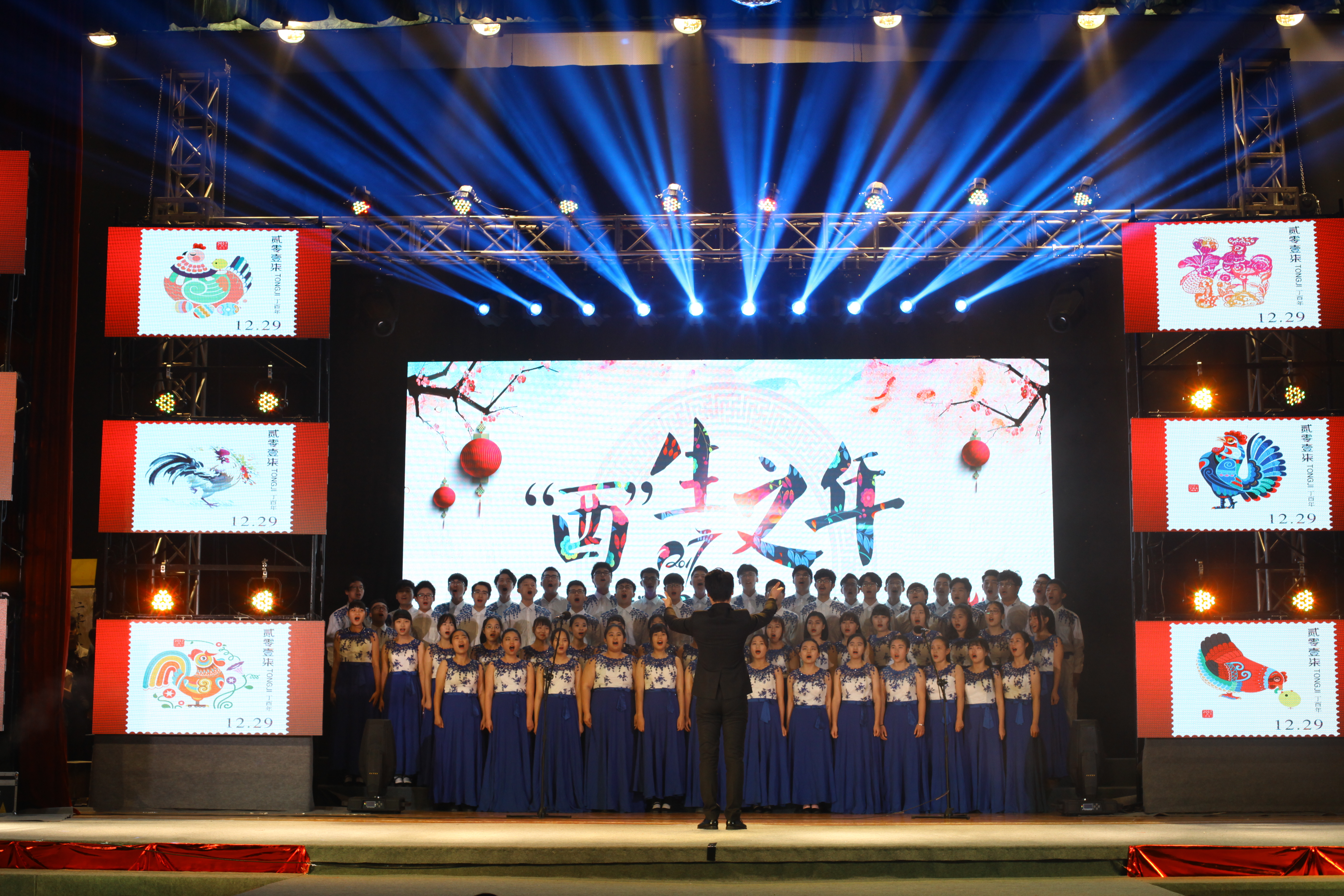 本次晚会形式新颖,除了到场观看,另特别采用网络平台进行直播,方便不能到场的师生观看。12级校友到16级新生各个阶段的主持人,构成一个满怀感恩的主持阵容。到校歌大合唱以及《同济,喜欢你》视频的播放,揭开了2017酉生之年元旦文艺晚会的神秘面纱,其间穿插令人捧腹、开怀大笑的小品,清幽而又多姿的舞蹈,惊心动魄的中华武术,还有特邀嘉宾的精彩话剧《脚步》和舞蹈表演《恋》给我们带来不一样的视觉体验。晚会时而使人捧腹大笑、时而使人热泪盈眶,演员们栩栩如生的表演与绚丽灯光的交相呼应,另观众的欢呼呐喊声,一浪高过一浪,其中抢红包的互动环节更是将晚会气氛推向一个新的高潮。校友返校主持,将大家带回了一个满怀感恩的活动现场。最后以歌伴舞的大合唱《爱我中华》结束了整场晚会。