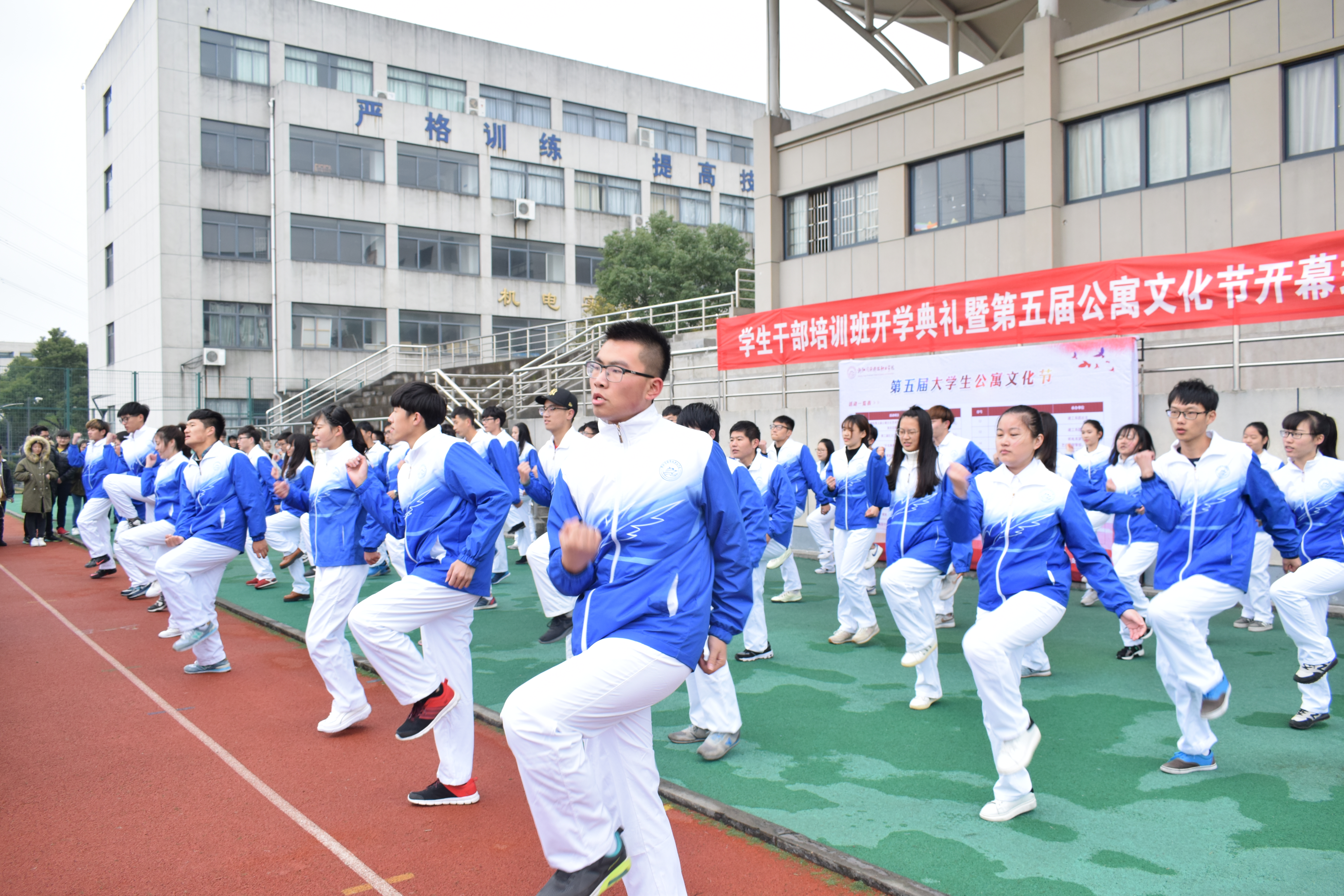 12月14日中午,学院2016年学生干部培训班开学典礼暨第五届大学生公寓文化节开幕式在学院操场举行。本次开幕式由汪骅主持,学院党委委员、副院长吴宏平,及后勤服务中心、学工部、团委负责人,各系党总支书记以及各系团总支书记等出席本次开幕式。