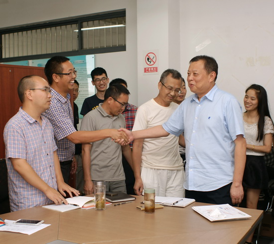 蒋厅长一行先后到各系教室、实训室等教学场所参观,向辛勤耕耘在教学一线的教师们表达了崇高敬意,感谢学院教师为我省水利事业培育了一大批优秀人才,为我省水利发展贡献了力量。蒋厅长等还参观了学院校区二期建设新落成的实训室,对学院的发展表示肯定。我院教师们纷纷与蒋厅长握手合影,感谢厅领导的关心。