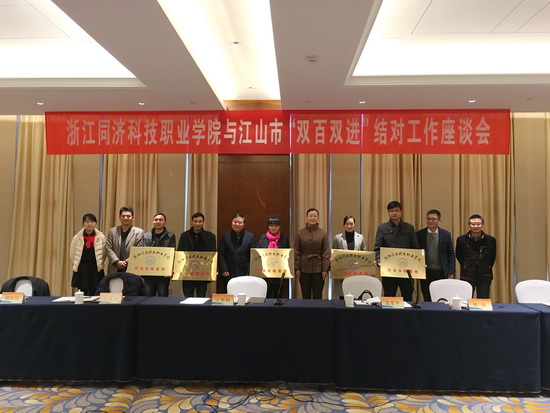 双方就推进“双百双进”具体工作进行沟通交流,并举行结对授牌仪式。会后,丁书记一行前往贺村镇、新塘边镇实地考察。