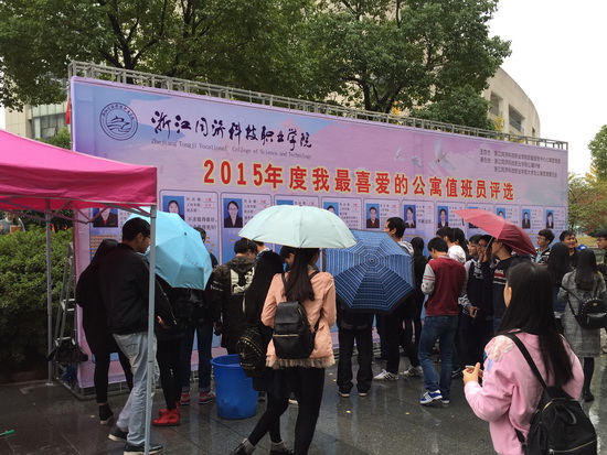 本次评选活动事先作了充分的宣传,得到了全校学生及公寓工作人员的积极响应和大力支持,在11月18日中午,经过公开、公正的现场点赞评选,江泽余、徐春根、王自平以高人气、高票数光荣摘得学生心目中的 “我最喜爱的公寓值班员”称号。