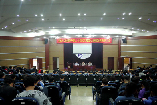 10月29日中午,我院2014-2015学年第二学期文明寝室、优秀寝室长表彰大会在信息楼报告厅隆重举行。学院副院长刘志华出席大会并作重要讲话,学工部、团委负责人,各系党总支书记、辅导员代表、班主任代表、公寓管理部门代表和学生代表共400多人参加了表彰大会,后勤服务中心主任竺波主持会议。