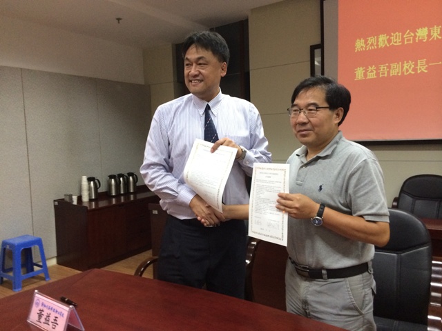 9月25日上午,台湾东南科技大学副校长董益吾、国际与两岸交流中心主任郑辅仁访问我院,院长梁国钱、副院长郭雪莽以及相关部门负责人在行政楼二楼会议室热情接待。梁院长代表学院致欢迎词,围绕学院概况、近年来发展情况以及未来五年发展愿景三个方面向董校长一行进行了简单的介绍。董校长也通过一个短片,介绍了台湾东南科技大学的基本情况。随后双方就未来两校间的交流合作领域进行了初步的沟通,交换了意见和看法。同时签署了合作协议备忘录,将在教职员工和学生交流、学术研讨会、夏(冬)令营等方面开展各种交流合作项目。此次会谈为两校间的友好协作提供了良好的开端,打下了坚实的基础。