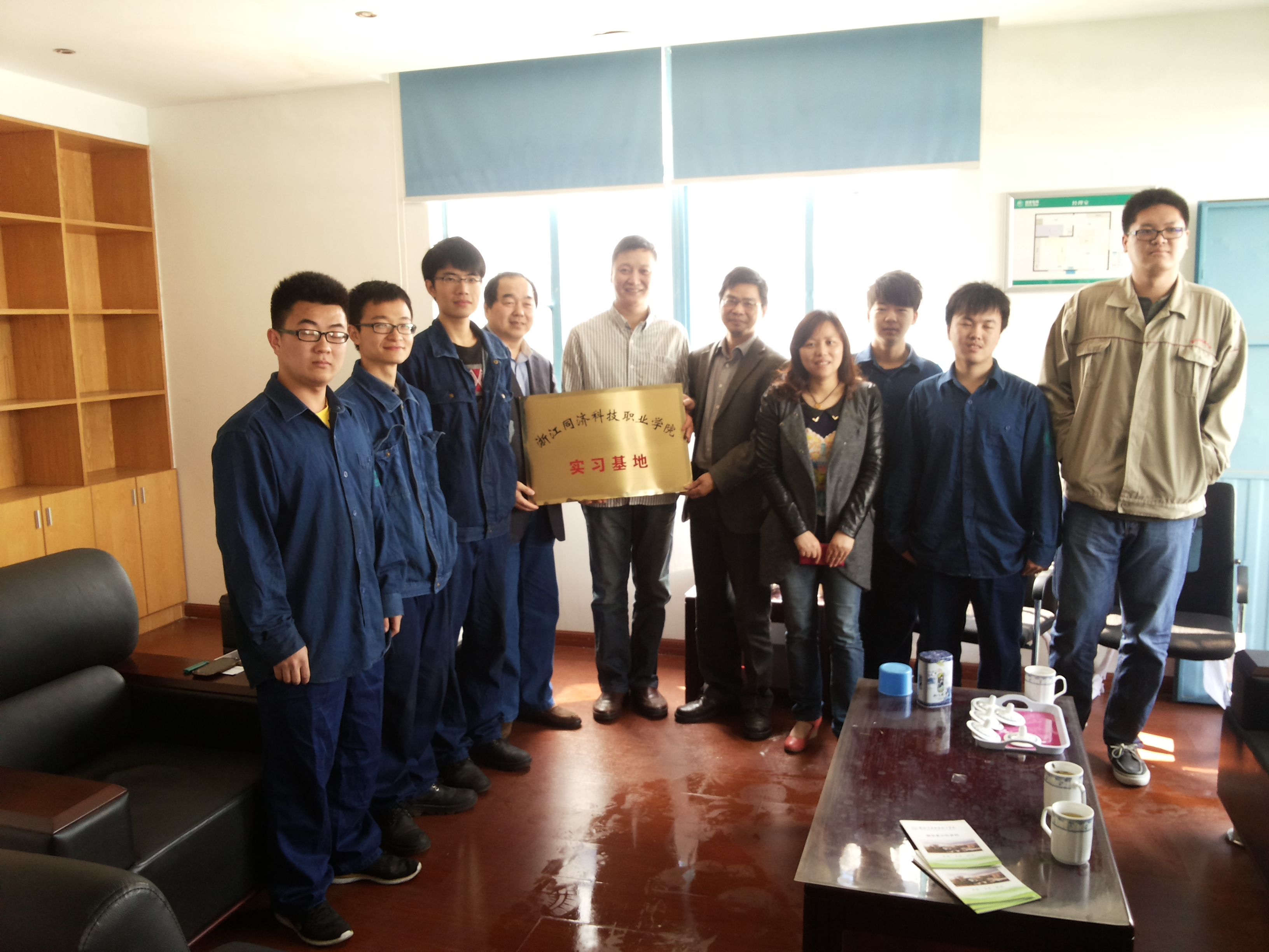 该公司徐一剑总经理等部门领导热情接待了大家。徐总经理简单介绍了单位发展的基本情况,表达了当前公司快速发展中对人才的渴求。同时对前后两届顶岗实习学生的表现予了充分肯定。得知共有2013、2014届十多位学生在该单位顶岗实习,目前2013届学生毕业后继续选择留在公司工作的还有二位学生,2014届的5位同学都和公司签订了就业协议书,郭副院长非常高兴。希望双方多沟通多交流,形成紧密型校企合作的良好愿望。郭副院长关切地询问在座学生工作生活情况,鼓励他们安心工作,潜心学习,刻苦钻研,成为企业的中坚骨干力量。