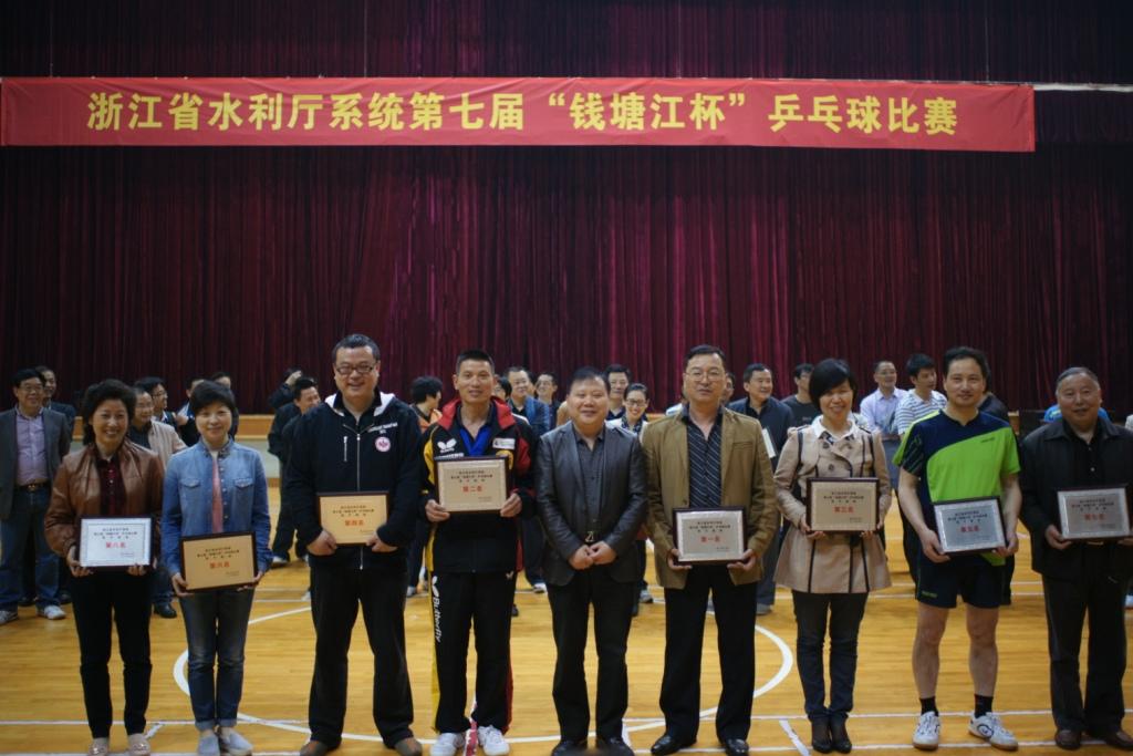 经过为期三天半的角逐,推广中心获得领导干部团体赛第一名,厅机关二队、工程局、钱管局、钱江水利、厅机关一队、质保联队、设计院分获二至八名;男子团体赛第一名由设计院获得,同济学院、水院分获二三名;女子团子赛第一名由水院获得,钱江水利、同济学院分获二三名;王晓峰(设计院)、周宝森(钱管局)、胡焕军(钱江水利)获得男子甲组前三名,沈逸(同济学院)、董庆(水院)、黄生江(推广中心)分获男子乙组前三名;女子甲组前三名为任立新(同济学院)、俞超燕(推广中心)、杨爱琴(同济学院)、女子乙组前三名分别是王梦乔(水院)、叶琳(钱江水利)、刘艳(钱江水利);我院获得最佳组织奖。