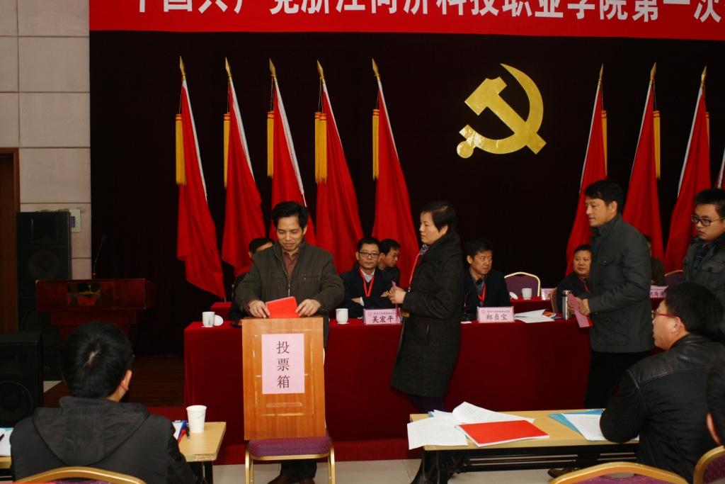 党委书记丁坚钢代表上届党委作了题为《紧抓机遇 凝心聚力 跨越发展 为建成国内有影响的高职院校而努力奋斗》的工作报告。报告全面总结回顾了过去六年来取得的成就和不足,并指出,必须坚持党的领导,抓住机遇加快发展,突出办学特色,坚持改革创新,坚持以师生为本,这些经验既是过去工作实践的深刻体会,也是未来发展必须遵循的重要原则,要长期坚持,不断完善。报告明确了今后五年的学院发展要求和目标,即以邓小平理论、“三个代表”重要思想、科学发展观为指导,全面贯彻党的教育方针,以“国内有影响的高职院校”建设为目标,以服务为宗旨,以就业为导向,坚持以人才培养为中心、以内涵建设为根本,以专业建设为龙头、以改革创新为动力,以产学合作为引领,加快实施质量立院、特色兴院、人才强院、合作旺院、和谐荣院战略,推动学院科学持续和谐发展。报告布置了今后五年学院发展建设的主要任务:坚持质量立院不动摇,不断提高办学质量;坚持特色(专业)兴院不动摇,不断提高办学核心竞争力;坚持人才强院不动摇,努力建设一支数量质量与办学相匹配的师资队伍;坚持合作旺院不动摇,不断推进校企深度融合和拓展办学空间;坚持和谐荣院不动摇,依法治校,理顺体制机制,深化校园文化建设,提升综合保障水平。报告要求进一步加强领导班子思想作风建设,提高党建工作科学化水平,加强基层组织建设,充分发挥党员模范带头作用,坚持社会主义核心价值体系,加强和改进思想政治工作,加强党风廉政建设,营造风清气正的良好氛围。报告强调,今后的五年,是非常关键也是十分宝贵的五年,全院上下必须牢牢把握未来发展的战略机遇,加快实施学院“十二五”发展规划,以建设“国内有影响的高职院校”为目标,全力破解发展难题,全速推进跨越发展;要认真学习贯彻党的十八大、十八届三中全会和省十三次党代会精神,在上级领导正确带领下,进一步解放思想,开拓创新,奋发图强,以高昂的斗志、扎实的工作,为实现学院新的历史性跨越而努力奋斗!
