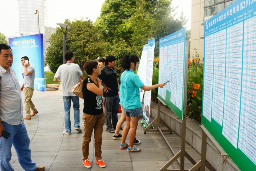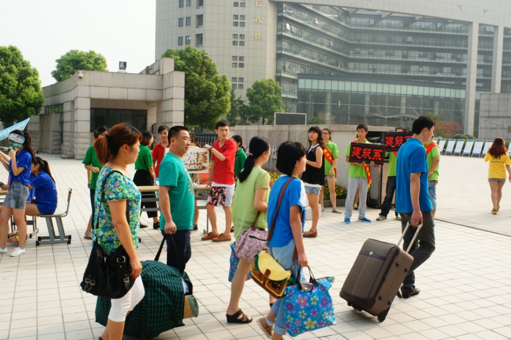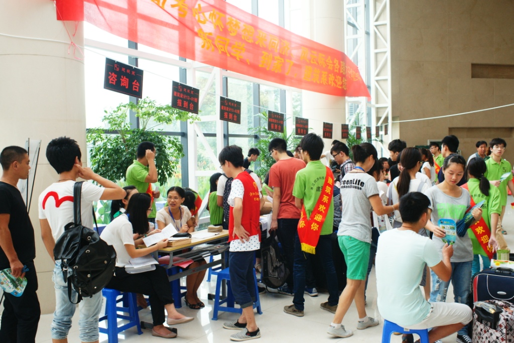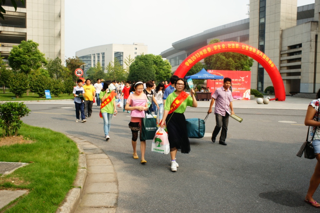 为了将学院最美好的一面展现在新生及其家长面前,学院上下一早做好充分准备迎接他们的到来。校门口树起了欢迎的气拱门并设置了一块块的指示牌,清楚地标示出了每一个报到流程;校园内随处可见欢迎新生的横幅,或鼓励或诙谐或流行的标语充分表达出学院对他们的欢迎和期望;一个个身披志愿者绶带、穿着志愿者马甲的志愿者们忙碌地穿梭在校园内,为每一位前来报到的新生及其家长做好最周到热情的服务,让他们第一时间感受到学院那家一般的温暖;报到大厅内,每个系每个班都明确划分了报到地点,所有新生班主任、助理班主任、老生都在忙碌着,指导新生完成报到,各系都设立了党员服务窗口,帮助有困难的同学,学生处、教务处、财务处、继续教育学院等相关部门也都各司其职,为每一位前来咨询或报到的新生予以解答和帮助;校园外,保卫处的同志们指挥着南来北往的报到车辆井然有序地进入校园;在杭城各大火车站和汽车站,也早早地站好了我们学院的老师和学生,等待着新生们从下车开始便予以关怀和帮助。大家都在尽其所能帮助新同学尽快履行报到手续,尽早适应大学校园。
