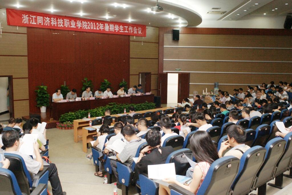 9月3日,学院2012年学生工作会议在图书信息楼报告厅顺利召开。院领导丁坚钢、叶舟、郑贞宝、沈燕、金连根、吴宏平、郭雪莽、刘志华出席会议,副院长郑贞宝作工作报告,院党委书记丁坚钢和院长叶舟分别作重要讲话。相关部门负责人、全体辅导员、班主任、生活指导老师参加了会议。会议分别由纪委书记沈燕和副院长郭雪莽主持。
