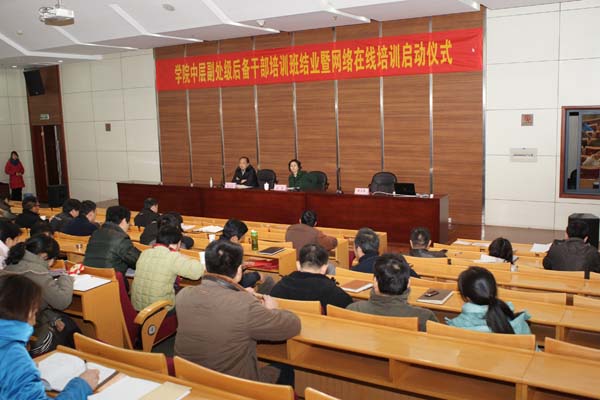 12月15日下午,中层副处级后备干部培训班结业暨网络在线培训启动仪式在学院行政楼报告厅举行,院纪委书记、副院长沈燕出席会议并讲话,组织宣传部部长陈玉阳主持会议。