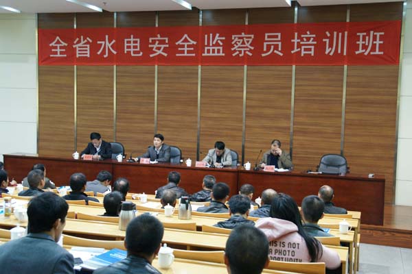 11月21日上午,全省水电安全监察员培训班开班仪式在我校举行。水利厅副厅长许文斌、学院院长叶舟、学院党委委员、水电干校副校长金连根等领导出席仪式。会议由省水电管理中心主任裘江海主持。