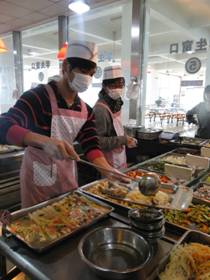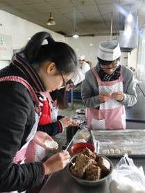11月24日,学生代表在后勤餐饮服务中心老师的带领下进入餐厅,实地观看了餐厅员工日常的工作流程,跟踪餐厅清洗、制作到出品、出售的每一个环节,亲身感受了餐厅工作人员如何为全院师生提供饮食保障服务。同学们详细了解了餐厅的管理、操作流程和伙食卫生情况。接着,又在餐厅员工的指导下,亲自动手尝试了洗菜、切菜、包饺子、窗口出售饭菜计算价格等,进一步增进了同学们对餐厅工作的了解,体会了餐饮工作的严谨性。
