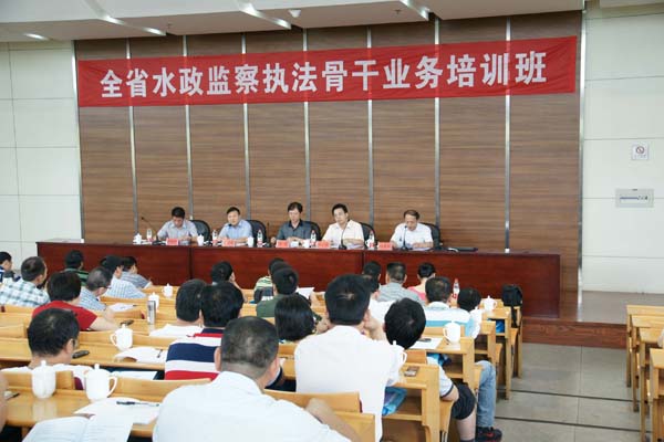 8月28日下午,我校举行全省水政监察执法骨干业务培训班开班仪式。水利部政策法规司副司长李鹰、省水利厅副厅长连小敏、厅水政处处长钱燮铭、副处长邬杨明、学院党委书记丁坚钢出席仪式。水政处处长钱燮铭主持开班仪式。