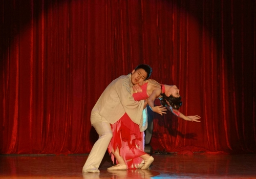 舞剧《李叔同》由浙江省文化厅出品,浙江歌舞剧院历时3年精心打造而成。该剧自2007年首演以来,在“高雅艺术进校园”等活动中巡演,获得广大观众和大学生的好评。此次,浙江歌舞剧院的青年舞蹈家们为我院师生带来了《绘画舞》、《离别》、《飞翔》、《曲水倩影》等精彩片段,舞剧设计体现了多种元素的融合,既有中国戏曲的含蓄委婉和身段韵味,又有西方舞蹈的热情奔放和自然流泻;风格迥异的中西音乐在这样一个独特的时代背景设定下巧妙地结合在了一起,既体现了舞台矛盾的激烈,也衬托了“戏台小人生,人生大戏台的”主旨,令师生们大饱眼福,经久不息的掌声表达出大家对该剧的喜爱和认同。